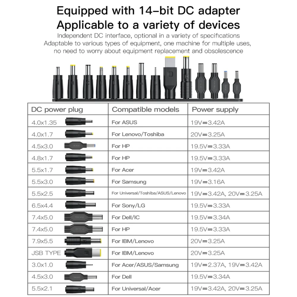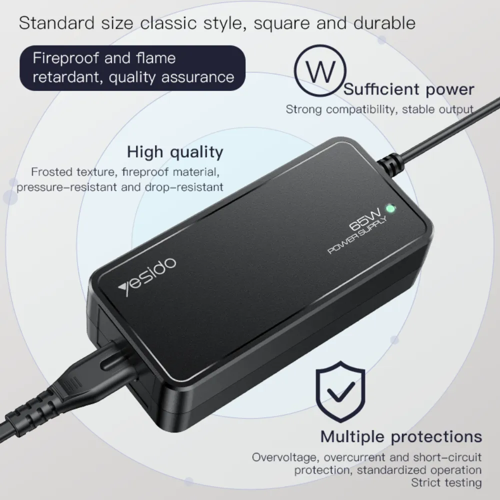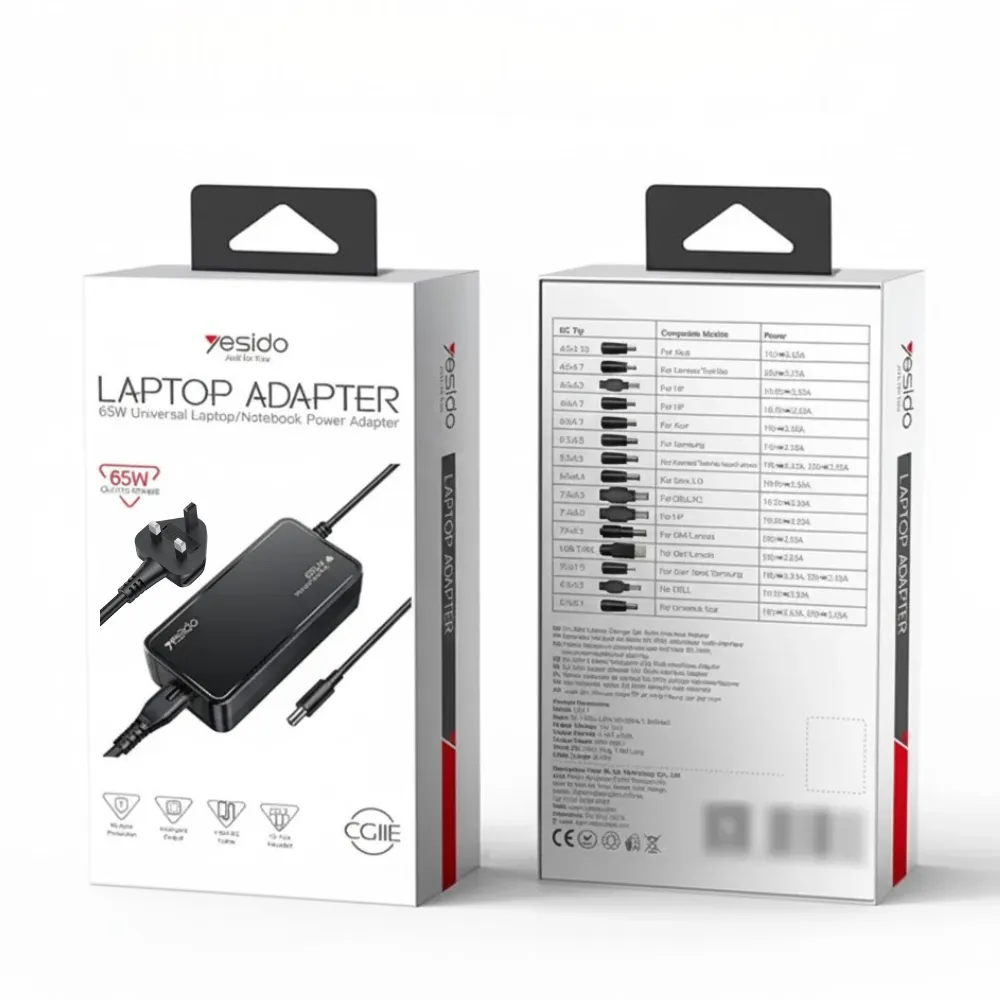 Charge all your devices efficiently with the Yesido CG11K 65W 15-in-1 Multi-Function Laptop Charger. Designed for versatility and portability, this smart adapter supports laptops, tablets, and smartphones with multiple DC outputs. Featuring universal PD/QC fast charging protocols, a 1.5-meter cable, and both UK and EU plug compatibility, it is the ideal power solution for home, office, or travel use.