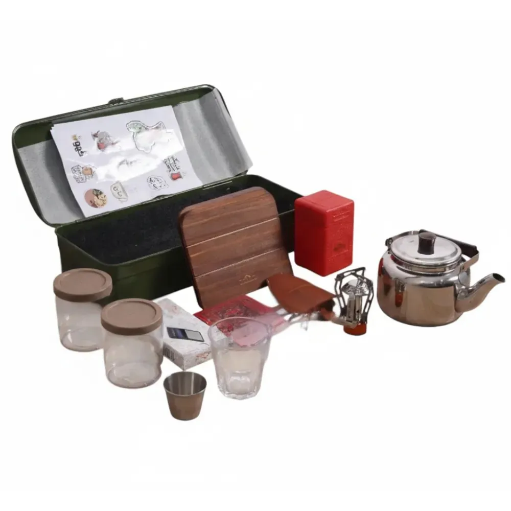 The Y-350 Coffee Travel Set is a complete portable brewing kit designed for coffee lovers who enjoy fresh coffee anywhere—at home, in the office, or outdoors. Packed neatly inside a durable latch-closure storage box, this set includes essential brewing accessories for convenient, on-the-go preparation. Its compact, organized layout ensures everything stays securely in place, making it ideal for travel, camping, picnics, and daily use. Whether you're brewing a quick cup at work or preparing a full outdoor setup, the Y-350 set delivers reliability, portability, and freshness.