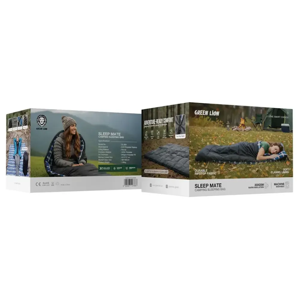 Enjoy warmth, comfort, and durability on every adventure with the Green Lion Sleep Mate Camping Sleeping Bag. Designed for outdoor enthusiasts, this sleeping bag combines a tough ripstop polyester exterior with a soft flannel lining for a cozy, skin-friendly feel. Its high-quality insulation ensures reliable warmth across multiple seasons, making it a dependable companion for camping, hiking, and travel. Easy to carry, quick to dry, and built to last, it’s made to keep you comfortable wherever your journey takes you.