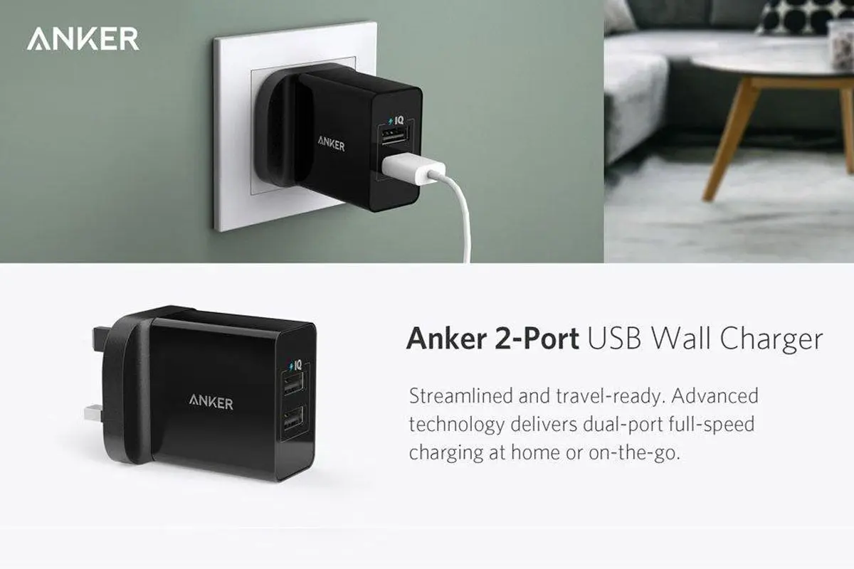 24W 2-Port USB Charger Fast Charging Technology Exclusive to Anker, PowerIQ and VoltageBoost combine to provide the fastest possible charge, up to 2.4 amps per port.(Qualcomm Quick Charge 2.0 not supported. For QC 2.0 charging, please see Anker Pow...